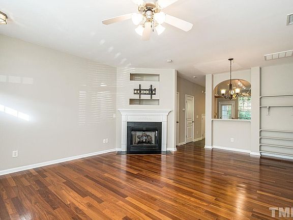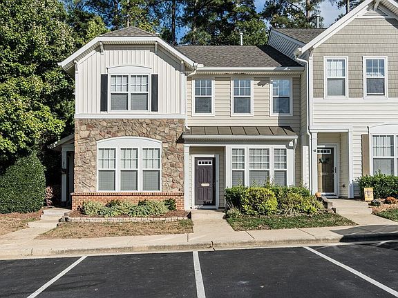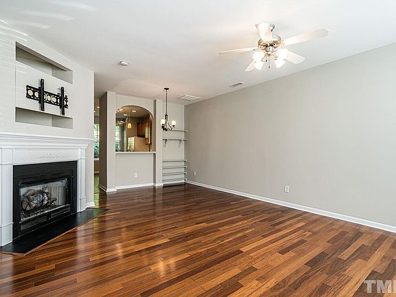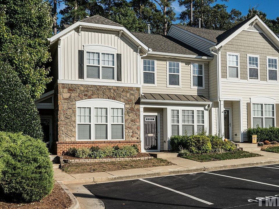 CLEAN & BRIGHT, MOVE-IN READY! This great townhome in Raleigh has gleaming wood floors on main level living/dining area, gas log fireplace, solid-surface counters, window/archway from kitchen, pantry, built-in micro, smooth-top range, disposal & dishwasher. Two bedrooms upstairs, primary BR w/ walk-in closet and private bath w/ dual sink vanity & tile flooring. Dedicated parking. Neighborhood pool & a clubhouse. You'll also enjoy built-ins, 2" blinds, linen closets for storage & more! WOW!