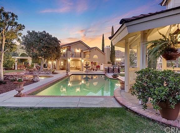 This is your opportunity to own one the finest Brock Estates II properties. This home sits on 3/4 of an ACRE, is nestled at the end of a quiet cul-de-sac & is surrounded by panoramic views of the mountains & open space. Custom wood & iron front doors open to the marble entry & dramatic sweeping wrought iron staircase. Neutral paint, rich dark wood floors, a stone fireplace & large bay window complete the elegant formal L/R. The D/R is light & bright w/ vaulted ceilings & new chandelier. The Gourmet Kitchen was recently remodeled w/ new cabinets, granite counters, Jenn-Air appliances, large island, pendant lighting & custom built in kitchen table w/bench seating. The expansive F/R has a fireplace & French doors to the backyard. There is a Main floor bdrm - perfect for guests or home office. The Master bdrm boasts an influx of natural light, sitting area, ceiling fan & French doors that open to a balcony. The Master Bath is elegantly appointed w/ an antique vanity, dual sinks, marble floors, separate soaking tub, shower w/ travertine design, walk in closet w/ organizers & mirrored wardrobe door. There are 2 additional secondary bdrms + a generous sized Bonus Room. The resort style backyard offers mature trees, lush landscape, Pool, Spa, BBQ w/ seating area, Gazebo, Fountain, multiple covered patio areas + large grass area. The driveway can accommodate approx. 8-10 cars and recreational vehicles. The home has been repiped, has new vinyl windows, water heater, A/C and heater.
