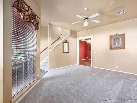 Welcome to this beautifully maintained & updated home with an upstairs bonus/flex room! One homeowner since built. Two spacious living areas, each with its own fireplace. 2025 updates include new carpet, quartz kitchen countertops & sink, gutters, roof with transferable warranty, and a smart garage door opener. Additional improvements feature a new HVAC system (2024), privacy fence (2023), and Mitsubishi mini-split installed upstairs (2020). Smart home upgrades include Lutron Caseta switches, Ecobee thermostat, and Ring doorbell/cameras. The spacious primary suite offers a double-sink vanity, jetted tub, separate shower, and two separate closets. Enjoy a fully fenced backyard with patio and storage shed, plus front yard Rainbird irrigation. House has been protected with termite prevention services for 27 consecutive years. The community offers fun outdoor spaces with a basketball court, playground, and volleyball pit. Convenient location near HWY 169 and 71st Street amenities!