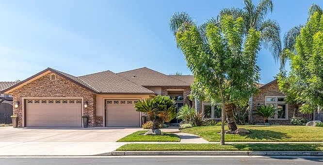 Beautiful home in N/W Visalia, located in Cobblestone 2 gated community, near Oak Grove School and a park. Large open floor plan makes it great for entertaining. High end appliances, double ovens, ice makers, instant hot, tank less water heater with circulation on master bedroom side. This property features built in, custom cabinetry, granite/tile counters and tile/carpet flooring, even the 3 car garage has tile. The bonus/ bar/game room has ice maker frig & a sink which makes for a little kitchen area for guests and leads to the beautiful pool and spa area. The whole house has Milgard windows, sliding door, surround sound speakers for tv or music, crown moldings, tall baseboards, shutters, roman shades, 2 jetted tubs, walk in closets, extra room in garage that the central vacuum is stored in can be used as a work room or extra storage, so much to offer, you won't want to miss this one! Call your agent today