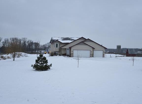 Peaceful setting in the country with a lake view on 2.3 acres yet just minutes from Cambridge, North Branch and Rush City! Sellers are offering this home with contract for deed financing. 10 % down with acceptable credit and income. Hard to find affordable and appropriately priced contract for deed option. (Naturally all financing types welcomed!) This 2005 built home has many updates including a center island with granite counter top, recently added deck, fenced yard, newer flooring, new roof just added this month and newly paved driveway that leads to the 3 car garage that has lots of room for storage or your toys including a custom built work bench! A Welcoming 3BR, 2BA home when you walk into a gorgeous vaulted ceiling of knotty pine and warms colors of paint throughout! This home has a large lower level L-shaped family room. All three bedrooms are of good size. The master bedroom has a walk thru to the bathroom, open floor plan in the kitchen, dining, and living room with vaulted ceilings. Bambo floors in the 2nd BR. Full bathrooms both upstairs and down stairs. Walk out basement to the fenced yard!