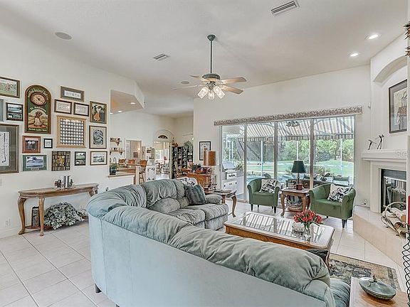 Spacious home on fabulous, private golf course lot in Rosedale Golf & Country Club. This extremely well-cared for home has 3 Bedrms + 3 Baths + Study/office. From foyer, enter the large great room w/ high ceilings, gas fireplace with tile flooring in main areas. Floor plan features great kitchen w/ 42" cabinets, wine rack, newer appliances, breakfast bar + nice breakfast room overlooking lovely pool. The office/study has door to Bathrm #3, and has new wood laminate floors + sliding glass doors overlooking pool and golf course! Separate dining room & space for 2nd home office! Beautiful Master Bedrm has new wood laminate flooring w/ bay window & sliding door to pool. 2 master closets. Master Bathrm w/ 2 sinks, separate walk-in shower and soaking tub. 2 additional guest bedrooms w/ bathroom in between. There's an oversized 2-car garage + 3rd bay for golf cart. Golf cart garage door opens to back of the garage for easy access to street. Many extras include; Ceiling fans thru out, Central Vacuum, sound system w/ ceiling speakers, outdoor grill and new electronic awning for additional shade. Do not miss this spectacular lot overlooking the 13th hole. NO CDD FEES & NO MANDATORY MEMBERSHIPS!! Quick access to Rt 75, Town Ctr Mall, Restaurants, shopping and beautiful beaches. Low HOA fees.
