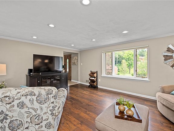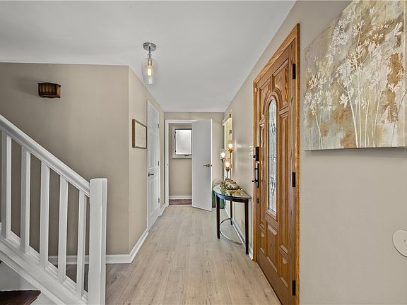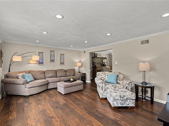 This tastefully updated 4-bed, 2.5ba home on a cul-de-sac street is move-in ready! The steps from the driveway land on a paver stone walk taking you through meticulous landscaping to a covr’d front porch. Inside, the foyer features durable light-toned vinyl flrs that lead on the right to a coat closet & pwdr room then left to a spacious liv rm w/large picture window, crown molding, recessed lights, & beautiful warm-toned vinyl flrs that continue to the din rm w/bay window, chair rail & crown molding. Off the din rm, the updated KIT features SS appliances, ample storage in striking dark cabinets accented w/light quartz counters w/peninsula, & a pass-thru to the fam rm. The fam rm features a gas FP & sliders to the partially covr’d rear patio & a backyard paradise. The upper lvl includes 4-bdrms, 2-full baths + a convenient lndry area. The owner’s suite is complete w/2 double closets & an en suite w/step-in shwr. The walk-out LL provides storage & potential for a game rm. 2-car grge.