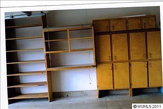 Our home has 3 bedrooms 2 with large closets and the smallest bed room has a small closet. Lots of wood trim through out the whole house. We just remodeled the Kitchen with new counter tops, sink, paint, and flooring through out the kitchen, dining room, pantry and laundry closet.. Removed the gas free standing fire place and the brick hearth that it sat on which gave room 3 extra feet. Garage has lots of built in storage and a work bench. Access to the attack is in garage with pull down ladder and has large area for storing.