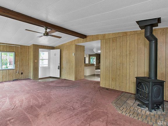 Another home available at Seashore Villa, a desirable 55+ community with an outdoor pool and a park with waterfront beach access. This adorable home has so much potential and is priced to sell. There's a large covered front porch, a patio in the back for entertaining, & covered parking in the back with plenty of storage. The living rm has a wall of windows from floor to ceiling and a propane fireplace for cozy winter evenings. The lg eat-in kitchen has ample rm for gathering friends.
