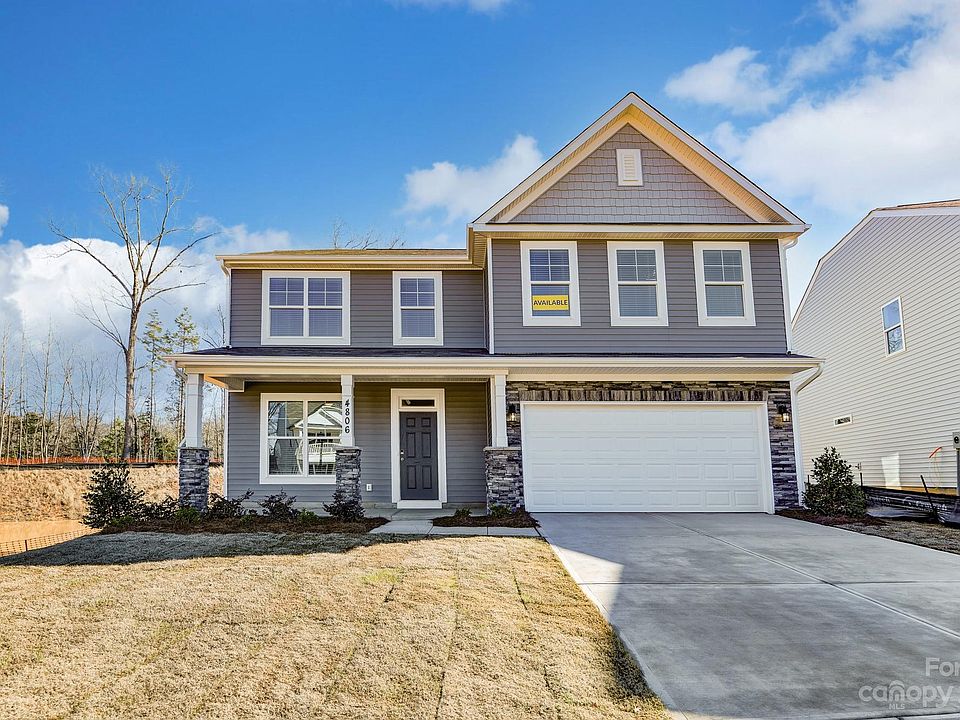 Proud to be named 2023 Builder of the Year, by the Home Building Association of Greater Charlotte! This Wilmington plan has 4 bedrooms and 2.5 baths. The main level features a large kitchen that opens to a breakfast area and adjacent family room, a study with French doors, and a dining room. The kitchen has dark maple cabinets, quartz counters, a white tile backsplash and stainless appliances including a gas range. The second floor includes the primary suite, along with three additional bedrooms, a hall bath, laundry room and a loft. The primary bathroom has an extended tiled shower with bench seat and dual sink vanity. Additional upgrades include and colonial trim, quartz counters in all baths, metal stair balusters and window blind package. Ask about the SMART features included in this home.