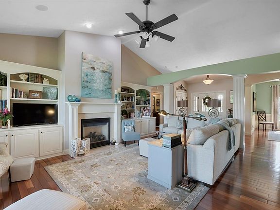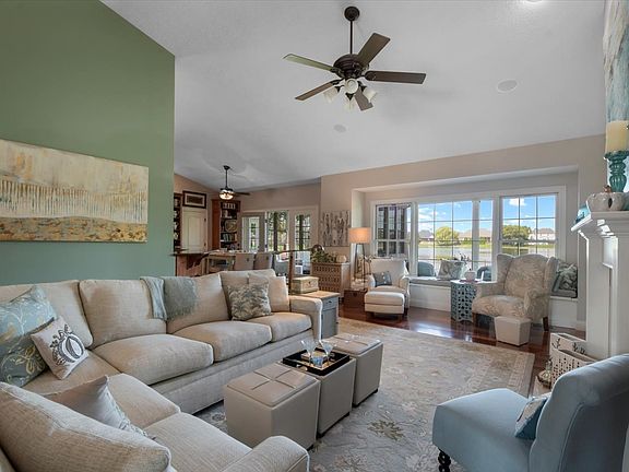 Gorgeous, updated, ready to move in ranch with water views is waiting for you! As you walk in you'll notice the wood floors and fresh colors that flow throughout. You'll especially love the kitchen with gorgeous cherry cabinets and quartz countertops, complete with a breakfast bar, double oven, and pantry. The sunroom off the back is definitely a show stopper! You'll enjoy many evenings outside looking out at the picturesque pond. If you'd rather be outside, you can step out to the backyard and enjoy time on your covered patio or below it near the fire pit. In the living room you'll enjoy the many built in cabinets and love the extra storage underneath the window bench. The generously sized 1st floor master bedroom has a master suite complete with a large walk-in closet, double vanity, tile shower, jacuzzi tub, and fireplace! It's the perfect place to unwind. On the other side of the house are two more bedrooms with a convenient jack and jill bathroom. A large dining room, laundry room, and half bathroom finish off this first floor. The basement contains an additional 2 more generously sized bedrooms and a full bathroom. This basement is the perfect place to entertain with a wine cellar and wet bar (complete with a dishwasher!) and plenty of space for games and movies. In case you need more storage, there is a large storage area finishing up the basement that you cannot miss! The speaker system throughout the house and irrigation system along with numerous other upgrades set this house out amongst the rest.