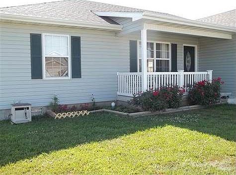 Newer 3bd.2ba. split floor plan, 2car garage, ALl elect. ONLY $97,900.00 AND COMES WITH SELLERS HOME WARRANTY!!This home has over $7,450.00 in upgrades when built 2yrs ago. Heavy Duty Insulated Vinyl siding for LOWER utilities, sealed covered back deck, drop ladder w/attic storage in garage, white rail front porch, side-by-side refrigerator, washer/dryer, solid surface oven-range, built-in microwave,Hickory wood cabinets,Stainless steel kitchen sink and disposal, Old World kitchen faucet,Heat pump, Frieze carpet, ceramic tile, laminate flooring,walk in closet, 40 gal. hot water heater,laundry room, sump pump,High Ceiling living room,Tray in master bedroom,and SO MUCH more. This house is in Karlin Acres just S. of Bolivar with easy access to Hwy. 13 but can go over Hwy. 13 to Outer Road to get back and forth to Bolivar. Very large fish stocked pond, and covered picnic area. Street lights and snow removal done by Association. Brokered And Advertised By: Hubbert Realty Listing Agent: Marie Havens