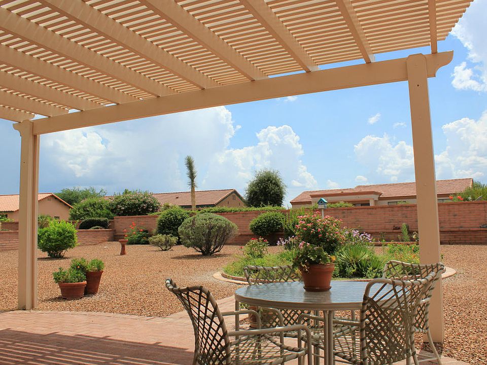 This Patagonia floor plan brings several unique angles in the home creating an interesting separation of areas, yet with a very cohesive flow. The large kitchen invites great gatherings, while offering lots of counter top surface, as well as plenty of kitchen storage. Generous bedrooms and master bathroom have plenty of space to add your personal touch. Berber carpeting in most areas with tile in entry, kitchen, laundry and bathrooms. Enjoy your back patio while sitting under the diffused light of the ramada, while taking in the view of your huge back yard, which is large enough for a pool (or two!), pets, and any other outdoor activities you might enjoy. Whether looking for a part-time or full-time residence, this home is the perfect size for your desert get-away.