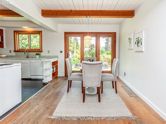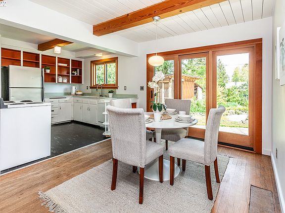 Beautiful Mid-Century Gem in ideal, end of road location on large lot in Woodstock neighborhood. Stylish, light-filled home w/views of the gardens at each turn. Sought after open concept & exposed wood beams. 2beds + generous bonus rm (think office, family rm, studio, guest rm). Updates include: Milgard aluminum clad wood windows, new siding, high-eff heatpump, upgraded panel & electric in LR,BR's,DR. Dreamy, private backyard w/sunken firepit, detached screened sleeping porch & lush gardens! [Home Energy Score = 1. HES Report at https://rpt.greenbuildingregistry.com/hes/OR10201858]