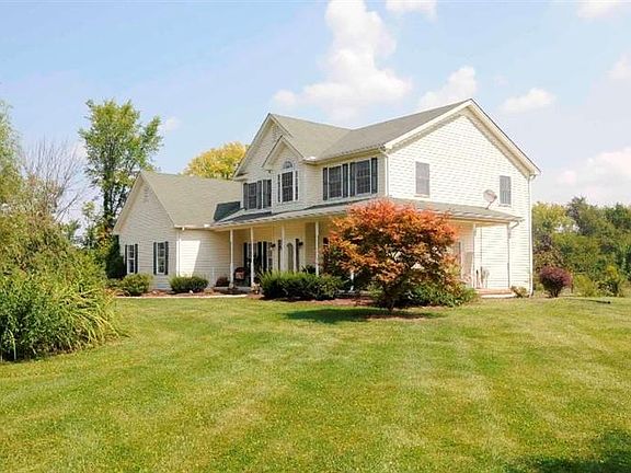 Room to roam! Newer farmhouse style but w/today's design on 5acs. Bring the kids & horses too, if you want to build a stable or have 4-H projects. Inviting home w/front porch charm! Super cool upst. bonus rm w/fr. drs. perfect for kids play or computer room. 1st flr master & laundry for stairless living if needed. Delightful sunrm. Lots of hdwd flr