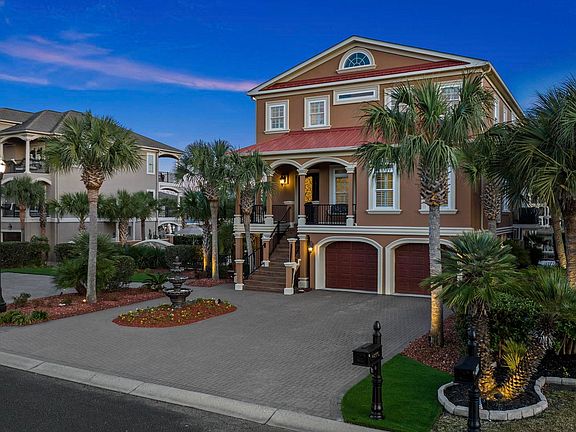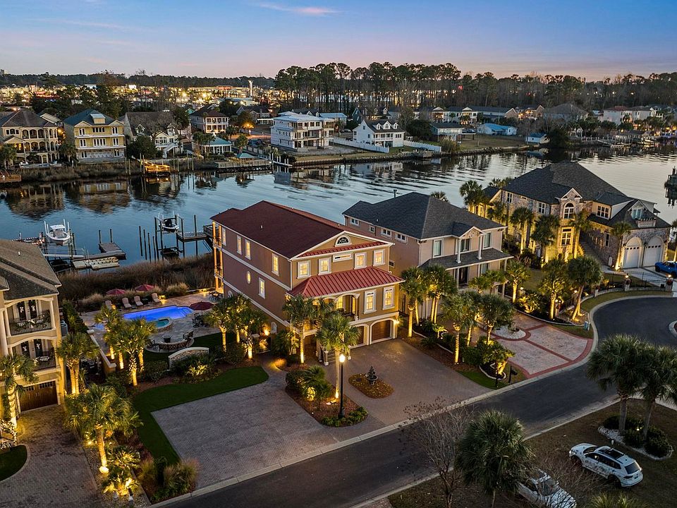Absolutely exquisite custom built home on beautiful Paradise Island in Little River. Direct Intracoastal Waterway location with one hundred feet of water frontage, situated on a double lot just under half an acre. This marvelous home is custom tailored to the coastal and boating lifestyle with two piers and docks, two private wet slips, one shared wet slip and three jets ski docks. Two boat lifts are also included and can also accommodate 19,000 and 13,000 pounds respectively. Perfect for entertaining, a new salt water, heated pool and spa were added in 2018. A large travertine patio surrounded by extensive landscaping allows for a beautiful space to relax, enjoy friends and the waterway views. The home is truly custom constructed with intricate detailing and custom features throughout. As you enter the home a grand staircase greets you with ornate iron railing. Gleaming Brazilian Cherry wood flooring can be found throughout and extensive mill work and wainscotting is evident. The floor plan is spacious with an open concept; the living room, formal dining and kitchen flow together nicely and offer expansive views of the waterway with clear view patio doors opening onto the balcony. The kitchen is a chef's delight with ornate ivory cabinetry, decorative hood vent, granite countertops and new stainless appliances with the exception of the range. Gas log fireplace with surrounding built in cabinetry give the space a cozy feel. Motorized Hunter Douglas blinds provide easy privacy when you desire. Perfect for entertaining, the living space has a convenient wet bar with beverage fridge and built in cabinetry. The main floor also features a guest suite with en suite full bath and a convenient powder room. Upstairs, a comfortable owners suite has a private balcony and luxury bath featuring a dual vanity, custom cabinetry with granite, jacuzzi tub and rain head shower. The adjoining his and hers closet has built in custom organization and shelving. Also on the second floor are two guest bedrooms with a shared jack and jill bath. A large laundry room with cabinetry and an additional wet bar complete the upstairs floor of the home. On the ground floor, an oversized climate controlled garage can fit six or more vehicles and has multiple storage spaces. For convenience, all floors are accessible by an in home residential elevator. Other interior features of this home include fresh paint inside and out in 2021, new HVAC in 2018, central vacuum, tankless water heater, WiFi thermostats and plantation shutters. Designer lighting, plumbing fixtures and recessed LED lighting complete the homes custom look . Outside, the property has a well thought out landscape design. A large paver driveway allows for plenty of parking. Extensive plantings, irrigation system and low maintenance artificial turf allow for easy maintenance. The outdoor space is highlighted at night by landscape lighting. A summer kitchen with grill and beverage fridge is just adjacent to the stunning pool and spa. The travertine patio is expansive and is perfect for entertaining guests. Surround sound is available with speakers on all balcony exteriors, ground floor overhead, living room and owners suite. A new bulkhead was added in 2018 and will offer many, many years of worry free enjoyment. Two piers connect the rear of the home to the boat lifts, docks and slips. Both docks have water and electric access. Perfect for the boating enthusiast, just a quick four and a half mile trip to the Atlantic Ocean. The property also has a security system and cameras in place for security monitoring. Paradise Island is a gated community for added security. Prime Little River location with easy access to North Myrtle and Highway 9 and 31. Turnkey and ready for you to enjoy! Don't miss this fantastic, one of a kind home...schedule your showing today. All information is deemed reliable, buyer is responsible for all verification.