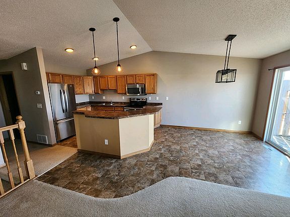 This Osgood 3 Bed 2 Bath twinhome has 1672 square feet of living space, a desirable open floor plan with vaulted ceilings upstairs, island in the kitchen, stainless steel appliances, brand new washer and dryer, central heating, ac, NO backyard neighbors and on a corner lot.. The attached 2 stall garage is insulated and heated. Renter is responsible for all utilities, electric, water, garbage, internet...etc