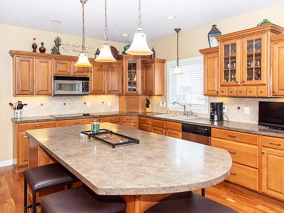 Open House! Sunday, December 15th 1:30 - 3:00. This one owner home, built by Hallmark Homes is located in Boulder Ridge and is truly a must see! You will be 'wowed' from the minute you walk through the front door with the grand staircase leading upstairs and the floor to ceiling windows in the living room. This home is an entertainer's dream with a spacious kitchen and a huge center island! There is a formal and informal dining area with a patio door leading to the maintenance free deck overlooking the backyard. On the upper level, you will find 4 bedrooms including a master suite with duel sinks, soaking tub and a large walk-in closet. There is a laundry room and an additional full bath on this level. The walkout lower level features an additional bedroom, bathroom, plenty of storage and a family room with a beautiful custom wet bar! This home has so many great features. Call your favorite realtor today to schedule your private showing!