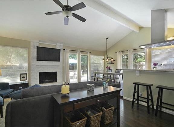 *New Roof July 2015*Fabulous single story in wonderful subdivision of Travis Country. Large lot surrounded by beautiful shade trees. Open, fresh interior with great natural light. Vaulted & beamed living room features brick fireplace. Beautiful wood floors & updated lighting! Granite kitchen with stainless appliances & crisp white cabinetry. Tranquil master with updated luxurious bath. Office/laundry combo. Community amenities include: community pool, tennis courts, access to greenbelt hike & bike trails.