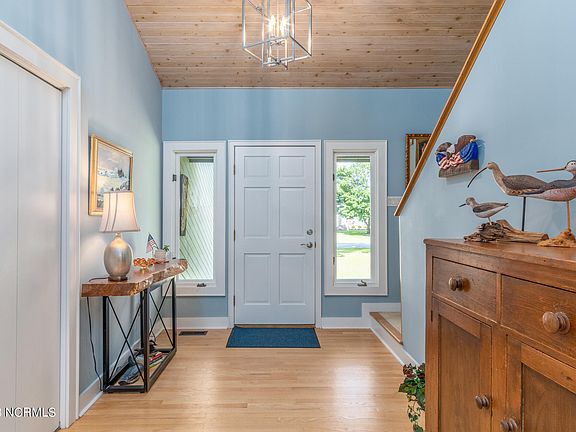 Be captivated by unparalleled features as you are welcomed with soaring cathedral ceilings adorned with stunning juniper wood, setting a rich & detailed tone throughout. Indulge in the abundance of natural light that fills every corner, thanks to the floor-to-ceiling windows offering abundant views of the enchanting wooded landscape that embrace nearly an acre of land. Enjoy the ultimate outdoor entertaining haven on the two-level deck featuring built-in seating providing a peaceful retreat right in your own backyard. The insulated shed is equipped with a portable HVAC unit and offers additional storage or workshop space .Inside, the kitchen is a chef's dream, featuring quartz countertops, a center island breakfast bar with a propane stove and tons of cabinet & countertop space! The expansive two-story living room creates a sense of openness and boasts a cozy wood-burning fireplace with a marble hearth. Unwind in the luxurious three-room master suite which includes an separate space to be used as an office, sitting room, den or nursery. A private oasis is found in the luxury bath which includes dual sinks, plus and vanity area, a huge soaking bathtub, and a separate walk in shower. The versatility of a bonus room adds endless possibilities, to be used for whatever your heart desires (this room was not added in the bedroom count). The home is equipped with two HVAC systems, ensuring comfort throughout the year.Offering a sanctuary that seamlessly combines elegance, functionality, and natural splendor!