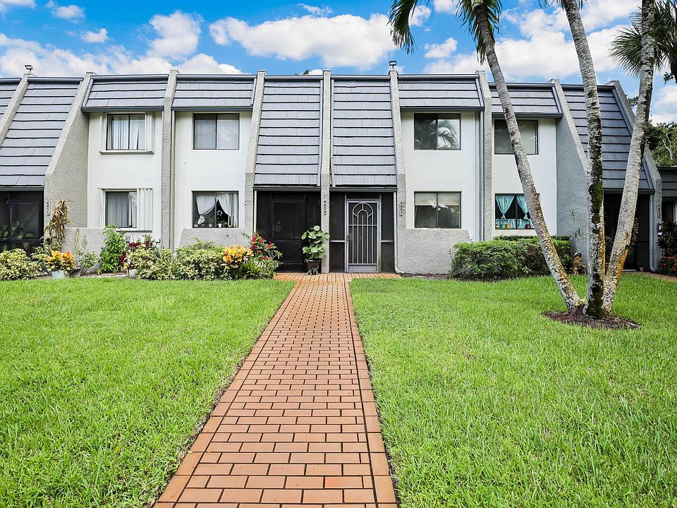 Welcome to this charming 2-bedroom townhouse nestled in a serent 55+ court within a gated community! This lovely home features an in-unit washer and dryer, a screened patio for relaxing, and a master bedroom balcony with stunning scenic views. Enjoy a well-kept neighborhood just minutes from shopping and entertainment. Optional membership provides access to a fabulous clubhouse with tennis, pickleball, golf and more! Don't miss this wonderful opportunity to make this beautiful home yours!