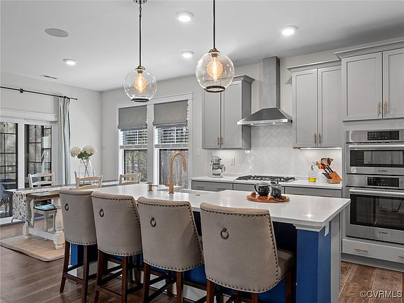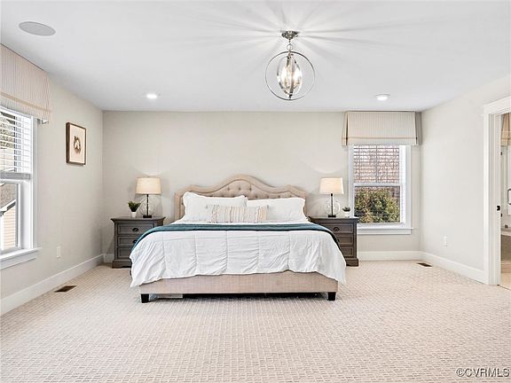 Upstairs, the luxurious primary suite wows with double walk-in closets and a spa-like en suite boasting tile floors, a double vanity, soaking tub, and tile shower. Three additional bedrooms offer walk-in closets with one featuring a private en suite bath. A spacious loft with hardwood flooring is the perfect bonus space. Enjoy the PRIVATE waterfront park with dock, picnic pavilion and fire pit for residents only. Placed in a highly sought-after, small and private waterfront community with top-rated Chesterfield schools, this home is the total package. Don’t miss your chance to own this fully upgraded masterpiece!