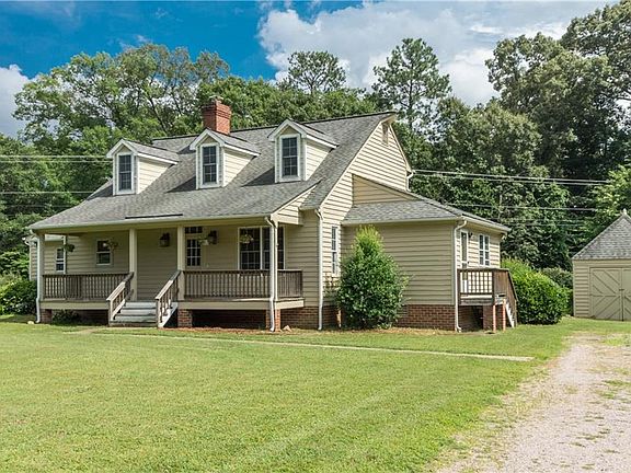 One of a kind custom home with a traditional front porch exterior on over an acre in a neighborhood without HOA. Step inside to a rustic 3 bedroom (possible fourth) that has it ALL! Main floor master, open family room, dining and kitchen area. The rear Brick covered patio is perfect for relaxing. Home boasts gorgeous beamed ceilings. Possible fourth bedroom or home office with separate entrance. Very large coordinating shed sold As-Is. Home sets on two lots (tax records Lots 12&13). Convenient to 288/95/Ironbridge. 20 minutes to Richmond or Fort Lee.