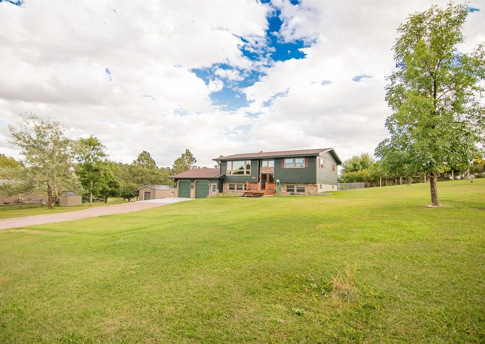 This home has been well taken care of. Upon entering through the French glass front doors you will notice a spacious entry way. Beautiful hardwood floors throughout the living room and dining area. You'll also find newer windows. U-shaped kitchen provides lots of counter space and includes a breakfast bar. The basement has newer carpet and a large laundry area/mudroom that leads to the garage. The large deck off the dining room and paved patio make for great entertaining or relaxing space. The large almost 1 acre lot is a great area for children and/or dogs to play. Within minutes from downtown Rapid City, you will have a country feel with city access.