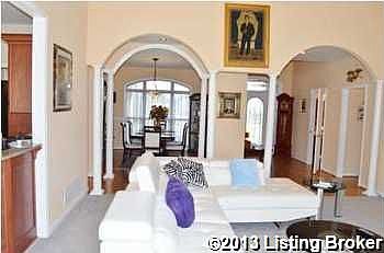 Welcome home to 4807 Stanley Farm Court in the beautiful, sought after Stonefield Trace! This breathtaking Split floor plan Ranch is the answer to your dreams. It is 99% maintenance free. This home boasts all the comforts of a country home, yet with all the modern amenities, with only a 20 minute drive to downtown Louisville. It has a fabulous open concept foot print. It features a gourmet kitchen with Cherry cabinets, pendant lights, double ovens for all your holiday cooking, cable hookups, granite countertops, stainless steel deep under mounted sinks, with enough room for a table and chairs, for those Sunday morning breakfasts as you bask in the magnificent private view of the huge park like yard. You can exit out a half french door onto the 10x13 ft. raised patio and listen to the birds sing while taking that long deserved soak in the fiber optic hot tub that is calling your name. The arbor covering the hot tub is covered with beautiful wisteria that blooms in the spring and fall. The living room is open and airy with columns and arched doorways. The attention to details are amazing in this home. The master is an en suite with the other half of the french doors exiting out to the raised patio. It features 2 closets one of which is a walk in. The master bath boasts a separate walk in shower and that ever important jetted tub. The ceiling is a tray and is adorned with red rope lighting. The other side of the house is equipped with a large bedroom, full bath and a third bedroom currently being used as an office. It is big enough for 2 full sized desks. The bonus room over the garage has so many possibilities it is equipped with plumbing, hardwood floors and carpet. It has a full basement with a roughed in bath, it also features 9 ft ceilings. There are also underground utilities and sewers. This house is perfect for entertaining. There are so many extras in this exceptional home. It's a must see.