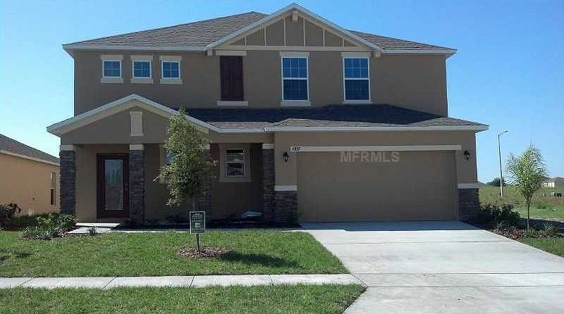 This beautiful and spacious open concept two story home is move in ready. Step in your front door to enjoy the vaulted ceiling entry. Recently painted and with new wood look laminate floors all throughout will leave you without projects to complete. The downstairs living area is open and directly connected to your granite surface kitchen so you can cook and be a part of the action. French doors off the living space provide you easy access to the large lanai. The downstairs master suite is just off the living space. The master bath is complete with a walk in glass shower, separate sinks, and a spacious master closet making getting ready in the morning easy. Use the wood banister to head up stairs to a large great room or media space. With 4 bedrooms and 3 baths upstairs no one will ever fight over a bathroom. One of these bedrooms is a master suite. The inside laundry is tucked away ready for action and storage. An irrigation system will keep your yard green. Plenty of storage and space in this home!! Located in Central Florida easy access to Tampa, Orlando, the attractions, and Legoland!! Don't miss out!!! CONTRACT FOR VA AND FHA NOT AVAILABLE UNTIL APRIL 12,2019!!!