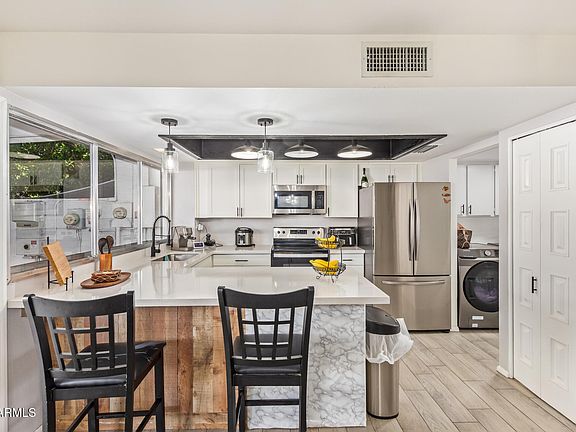 PAID OFF TESLA SOLAR!!! Welcome to a lovely one of a kind 4 bedroom, 2.5 bath Townhouse at West Plaza. The main level features hard flooring, a spacious living room and kitchen, inside laundry and half bath. Primary suite with walk in closet and 3 additional rooms at the second level. Enjoy Arizona weather out in the backyard with cover patio, all you need to add is your grill and patio furniture.