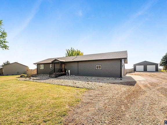 Gorgeous Updated Home Resting on 1.11 Acres Just North of Brandon with Heated 30'x54' Outbuilding! This home is an absolute stunner and offers quick access to interstate, the City of Brandon, and East Sioux Falls shopping. Step inside and fall in love with the completely renovated interior offering a wide open floor plan with vaulted ceilings and white millwork with 5 panel doors. Luxuriously appointed kitchen showcases white painted custom cabinetry, quartz counters, LG black stainless steel appliances with gas range, and a large center island. Bright living room houses a cozy gas fireplace with brick surround. Spacious bedrooms and the master walks through to the elegant full bath with ample cabinetry, dual sinks, and tiled tub/shower walls. Lower level houses a huge family room, 3rd bedroom, another full bath, and a large non-legal bedroom. Additional offerings include an oversized heated double garage, fenced backyard, natural gas (no propane!), and a 30'x54' heated outbuildiing.