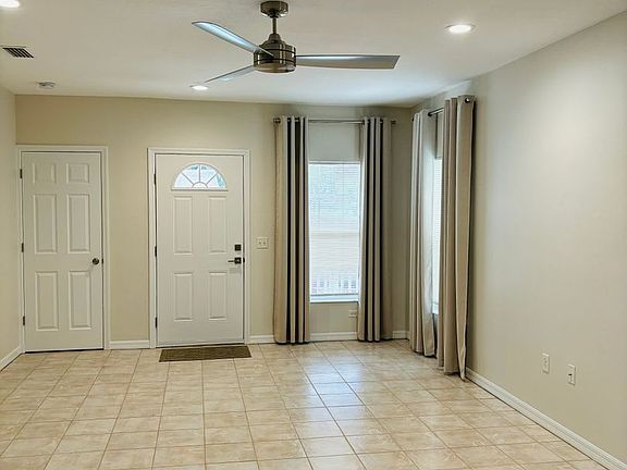Extremely well-maintained duplex with three bedrooms and 2 full bathrooms. This open floor plan features tile flooring throughout the property, recessed lighting in the living room, a snack bar, coat closet, utility room complete with a wash machine and dryer, blinds and curtains. There is plenty of cabinet and counter top space in the kitchen. The kitchen appliances are stainless-steel and include a range, refrigerator, microwave, & dishwasher. There is central heat and air conditioning. The prime bedroom is 10 x 12 and the two other bedrooms are 10 x 10. My measurements are approximate. One small pet is allowed with a non-refundable pet fee of $250.00. Owner is the landlord.