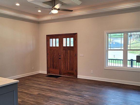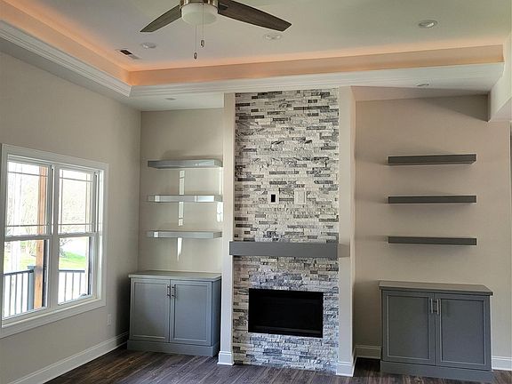 The inviting front porch welcomes you into this new construction in NW Hickory! Open concept, great room features gas fireplace with build-in cabinets and floating shelves, 11 ft. ceilings with enhanced lighted tray ceiling. Kitchen features custom cabinets including K island for easy entertaining, beautiful quartz countertops & tile backsplash. Vinyl plank flooring throughout. Split bedroom design, has the master suite with lighted tray ceiling, 10 ft., a large walk-in closet and bath that includes a dual vanity w/quartz countertop, walk-in tile shower and private water closet. Two additional bedrooms share a hall bath. Laundry offers great space with cabinets & sink for convenience. Oversized deck with a covered nook just outside the dinning room. Rinnai tankless gas water heater. Huge unfinished basement plumbed for future bath and kitchen gives the possibility for expanding your living spaces.