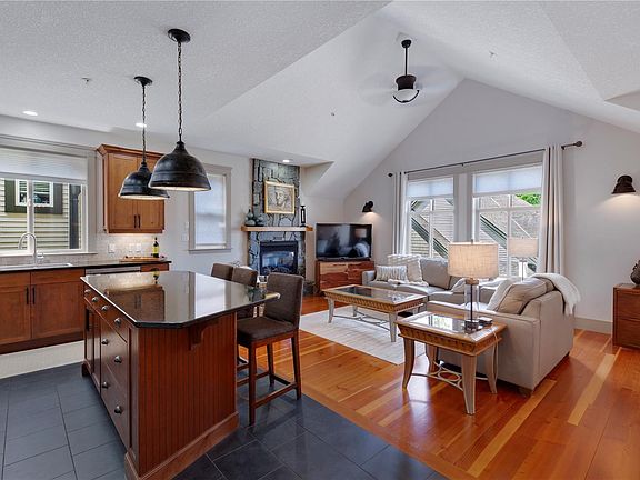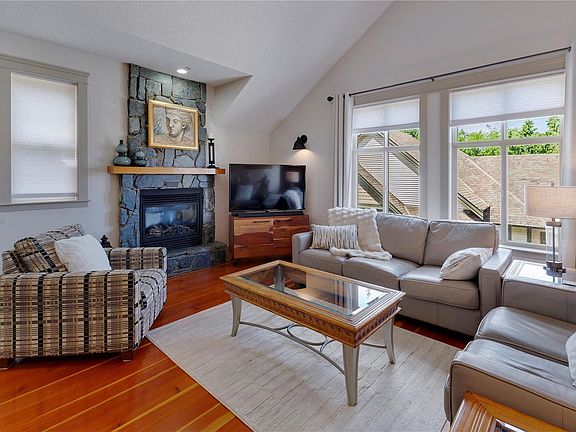 Tucked away in a quiet, well-kept community near some of Nanaimo's most scenic coastline, this spacious 3-bed townhome offers a thoughtfully designed layout perfect for both everyday comfort and entertaining. The main living area features the open-concept kitchen, dining, and living room, with soaring vaulted ceilings, quality wood floors, and a cozy gas fireplace that anchors the space. Step outside onto the private, professionally landscaped patio—ideal for morning coffee or evening relaxation. The primary bedroom is tucked away for privacy and features a walk-in closet and a well-appointed ensuite. On the entry level, you'll find a generous double garage, half bath, laundry area, and an oversized bedroom that can easily function as a media room, office, or guest suite. With a great location close to Neck Point Park, Pipers Lagoon, shopping, and multiple beach accesses, plus nearby transit options, this home combines tranquility with convenience. Pet and rental friendly.