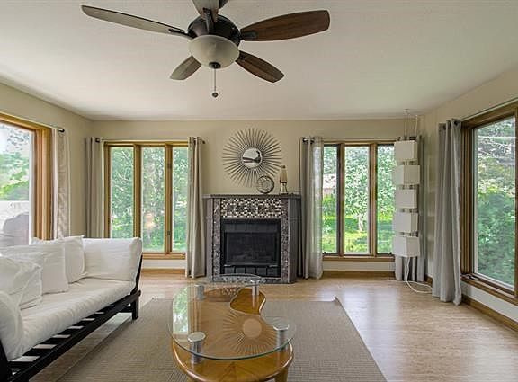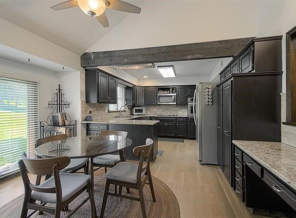 Escape home to this stylish mid century modern feel ranch that is spacious inside and out and located in a quiet and secluded Shawnee neighborhood. Kitchen, bathrooms, HVAC, lighting, curb appeal, appliances, flooring have all been updated to name a few. This home is perfect for entertaining with multi level options inside and out. Get the easy main level living you desire - laundry room, 1/2 bath, primary bedroom with ensuite, sun room, 2 extra bedrooms and plenty of storage too! Everything you need is on the main level. Spacious primary bedroom with large walk in closet, updated double vanity and recently remodeled walk in shower. Dramatic living room with gas log fireplace surrounded by gorgeous stacked stone, soaring ceilings and warm wood walls give it so much character. Open large eat in kitchen offers a breakfast bar, plenty of built in storage, stainless steal appliances and granite counters. Getaway and relax in your sunroom or enjoy quiet sunsets on the deck overlooking your beautiful treed and well landscaped yard. Walkout finished basement offers a another level of living - basement bedroom, office/flex space room, recreational room with fireplace and kitchenette and a full bathroom. Oversized two car garage plus a total bonus, there is a third car garage around back can be used for all your extra toys or make a great shop. Tuff Shed out back to help store all your things too! So many hard surface floors throughout the house for ease of cleaning. Low maintenance siding, thermal windows. Amazing yard space with multi areas for outdoor living space and a sprinkler system in the front to help keep it beautiful. This neighborhood has one of a kind homes and low traffic but easy access to get to shopping, highway, restaurants, and parks.