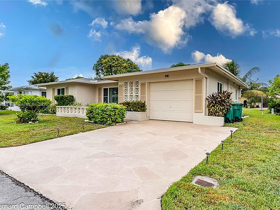 Welcome to Mainlands of Tamarac Section 6! This well-maintained Single Family with 2-bedroom, 2-bathroom offers a spacious split floor plan with tile flooring throughout and wood floor in the bedrooms. Remodeled bathroom and 2nd bathroom with Jacuzzi. Located on a quiet dead-end street, the home features hurricane-impact windows for added safety and peace of mind, along with a one-car garage that includes a washer and dryer. Enjoy the lush surroundings with beautiful fruit trees in the yard and take advantage of the vibrant community amenities, including a clubhouse, swimming pool, and more. Conveniently located near shopping centers, major highways, and everyday essentials. The HOA claims 55+community status. Don't miss this opportunity—schedule your showing today!
