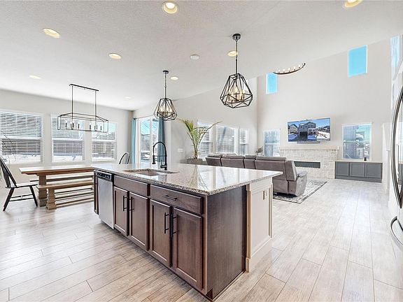 - Built-in Features, Ceiling Fan(s), Eat-in Kitchen, Granite Counters, High Ceilings, Kitchen Island, Open Floorplan, Primary Suite, Smart Thermostat, Walk-In Closet(s)