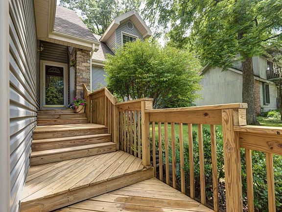 Impressive 1.5 story walkout basement home on a corner lot nestled among trees. Loaded with upgrades, updates & special features including double pane tilting windows, garage door, deep profile siding, expanded front deck, new heat pump, blower, new carpet & flooring throughout. All is freshly painted. Kitchen includes a very stylish plank style flooring, high definition laminate countertops & stainless steel appliances. Large living room accents the open floor plan, wood beams grace the cathedral ceiling & a beautiful stone fireplace balances the view. The floating staircase leads to a large upper landing with French doors opening to a bonus room, 2nd living area & reading nook. Even the master bedroom has upgraded features like crown molding & large walk-in closets. Walkout basement fe..features everything a person wants a basement for. Not just protection against the storms but also lots of storage, work area, play area, large closets, wet bar all spilling out into a gorgeous very private back yard with lots of trees & beautiful landscaping all wrapped with a 6ft wood privacy fence. Cherokee & Kickapoo schools, quick easy access to James River ââ¬âlots of space, lots of storage, lots of trees in a great neighborhood - don't miss this one.