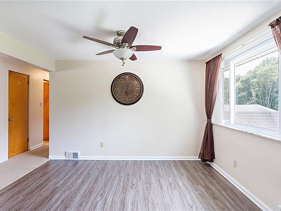 Charming Three bedroom ranch located on a low traffic, no outlet street with a proper master en suite and a two car garage. This home offers many updates, ample storage, and is situated on a double lot. It is super clean and truly move in ready!! Both full baths have been beautifully updated, the kitchen features stainless steel appliances, a gorgeous new kitchen/dining room floor, it has a newer roof, windows, and the HVAC system is less than 10 years old. There are hardwood floors under the carpets. The gorgeous private backyard is Pittsburgh flat and is the perfect place for entertaining or relax under the cherry tree and enjoy nature. It has a new concrete patio, and backs to the woods for added privacy. This home has been meticulously maintained!! There is a park within walking distance and the home is located near shopping, hospitals, highways for easy access to the city, and so much more!!