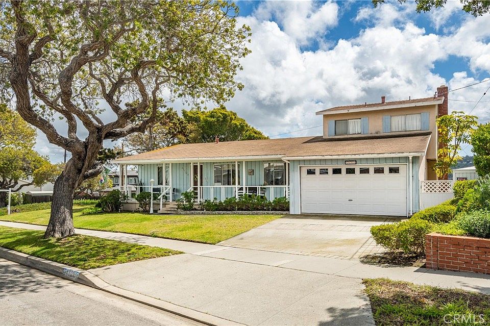 Located in the desirable, South Torrance "Candy Cane Lane" neighborhood, this house is within walking distance to all three award-winning schools, Seaside Elementary, Calle Mayor Junior High and South High. It is close enough to the ocean to catch the cool sea-breezes, with views of the Palos Verdes hills, and the South High valley between. This home was remodeled some years ago, and the kitchen was enlarged, with a bar added and Spanish tiles on the floor, opening up to a step-down family room, with hardwood floors, a high ceiling and a cozy gas fireplace. At the same time, a large master was added upstairs with expansive views from three sides. There is another gas fireplace in the master, along with a walk-in closet and adjoining bathroom. One bedroom was opened up to create a formal dining area and there is a convenient pass-through to the kitchen from the dining room. Sit outside in one of the back patio areas, enjoying the sunsets, or on the wide front porch, enjoying the quiet neighborhood. Located within walking distance of Ralphs, stores and restaurants, and within two miles of Del Amo Mall Shopping Center, Riviera Village and Redondo Beach.