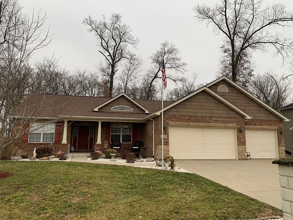 For sale by owner: 3 bedroom 2 bath. Custom built home on premium almost 1/2 acre lot with 3 car garage located in Ledgestone subdivision. One story ranch style home with walkout basement. The basement is unfinished with an additional 3/4 bath, three egress windows, and rough in for fireplace. The master suite has bath with corner tub, separate shower, double sink vanity and walk in closet. The large deck off of the kitchen area has a gorgeous private view of wooded lot with waterfall and bridge crossing the creek. This house is a must see.