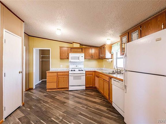 3 bedroom 2 bath 1999 Oakwood double wide home on 1.1 acres! This home offers 2,128 sq ft of living space, separate family and living rooms and a detached 1 car garage! Other important features and upgrades include: *New metal roof in 2017 *New paint *New skirting *New double-pane low-e windows *New laminate flooring in kitchen *New lower kitchen cabinets *Open floor plan *Ceiling fans *Shutters *Double sided wood burning fireplace *Formal dining *Kitchen pantry *Indoor laundry area *Master bedroom with walk-in closets, dual sinks, separate walk-in shower and tub *Trek flooring deck *Double carport *Fruit trees *Above ground pool *Utility shed *Green house *Garden area