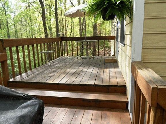 One story home in excellent condition. Bright and open floor plan. Neutral colors. Tastefully decorated. The oversized rear deck looks onto a wooded back yard. Mature landscaping and well maintained lawn. The cul de sac location means less traffic. Garden storage underneath the deck. This home is perfect for a first time home buyer or an empty nester looking to downsize.