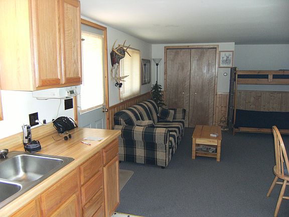 This is a cozy open floor plan cabin with a separate bathroom. The cabin includes a small kitchen with a stove and refrigerator and is furnished with a kitchen table and 4 chairs, couch with queen size sofa bed and a full size futon bunk with a single bunk above. It is heated with a propane fueled stove with a glass door for viewing simulated logs burning. The snowmobile trail runs along with back of the property on federal forest lands. This is a perfect weekend cabin for hunting, fishing, using snow machine trails or any of the many outdoor activities enjoyed in the Upper Peninsula of Michigan.