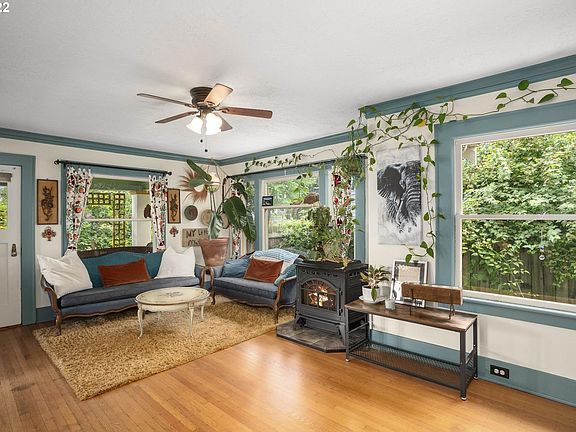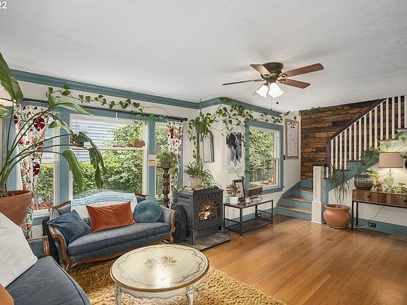 Cute artist's bungalow w/ boho vibes! Enjoy crown molding, built-ins, stained glass & hardwood floors. Circular floor plan w/ spacious living room & arched opening to dining room w/ built-in bench & hutch. Kitchen w/ hickory cabinets, marble counters, copper sink, 2nd built-in oven & butler's pantry. 3 vaulted upper-level bedrooms, one w/ French doors to deck. Main floor bonus room w/ door to covered patio & updated full bath w/ tile finishes. Fenced backyard w/ new pergola, raised beds & shed. [Home Energy Score = 2. HES Report at https://rpt.greenbuildingregistry.com/hes/OR10203674]