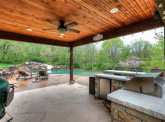 This beautiful 5 bed home will WOW you with its stunning outdoor entertainment space featuring a custom inground pool, basketball/tennis court, outdoor kitchen, 30x40 outbuilding & more! Interior features open concept living w/ wooden beams, custom tile, chefs kitchen, floor to ceiling brick fireplace & tons of space for friends/family. LL offers theater room, wet bar, and huge rec room. Romantic master suite features barn wood wall and ceiling w/ spa like master bath, steam shower, soaker tub, & walk in closet.