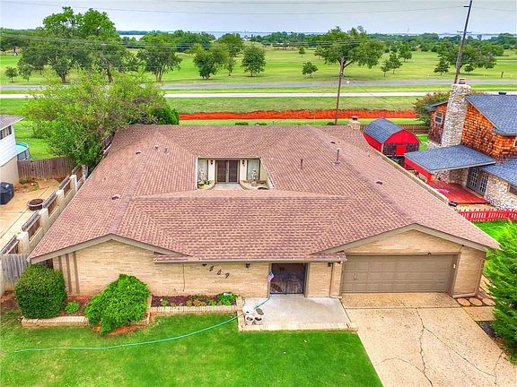 Beautiful 4 bedroom, 2.5 bathroom home. Updated open floor plan overlooking Hefner Golf Course. Large kitchen has granite counter tops, under mounted sink, tons of counter space, cabinets and a bar area with room for seating. The kitchen flows into the open and airy living/dining area with a wall of oversize windows that look out onto the well manicured lawn and Hefner Golf Course. The Master has an en suite bathroom with walk in closet and plenty of storage. There are 3 other good sized bedrooms, and full bathroom down the hall with a sliding glass door leading out into the private courtyard. There is a half bath off of the laundry and kitchen. The living room and kitchen were renovated including flooring, fixtures, lighting and paint throughout.Lovely, well established neighborhood with easy access to NW Expressway, Lake Hefner, walking trails, shopping, restaurants, amenities and more. Standard home warranty included. The City of OKC maintains and mows grass beyond backyard fence.