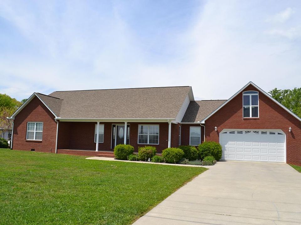 Spectacular one level all brick home with beautiful mountain views! Situated on a large .60 acre level lot with attached 2 car garage + huge detached garage/workshop. This like new home features an open Great Room, spacious kitchen w/ gorgeous mosaic tile backsplash, abundance of custom cabinets & Stainless Steel appliances. Master Bedroom with walk-in closet & Master Bath with luxurious whirlpool tub and separate shower. With 3 BRs + Bonus Room over the garage, there is room for everyone!
