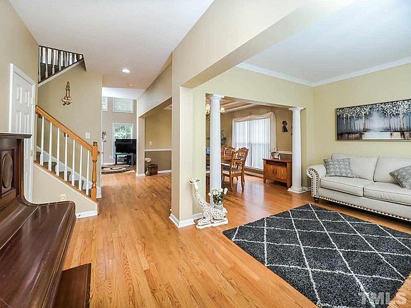 This Beautiful APEX home on .7 acres w/ magnificent Screened Porch, stamped patio & private backyard oasis could be yours! Enter your grand Foyer with gleaming site finished hardwoods from the Liv rm to Din rm to 2-sty Great Rm OPEN to Gourmet Kitchen w/ white cabinets and NEW Granite! Addl Study/Playrm on 1st fl. 4 BRs & 3.5BAs incl a gorgeous Mstr suite w/ Cath ceiling, Lrg. Bath & ample his/hers closets! 2-car garage + wired 16x12 shed. Fully fenced. 1-yr. warranty incl. Excellent schools & location!