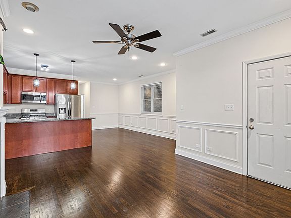 Crown moldingOpen kitchenCherry cabinetryGranite countertopsCentral airStainless steel appliancesBrand new hardwood floors