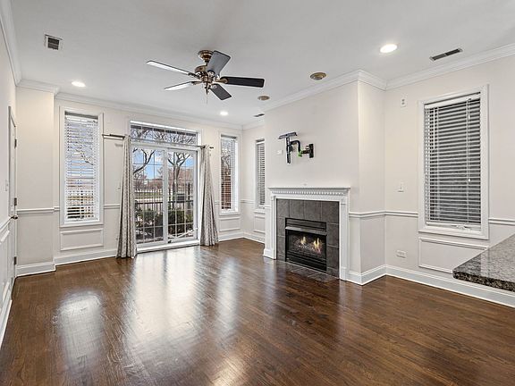 Located in vibrant Bronzeville, this 3 bedroom, 2 bath unit offers a thoughtful layout. The open kitchen features cherry cabinetry, granite countertops, and stainless steel appliances, making perfect for entertaining. The primary bedroom includes a walk in closet and an en suite bath with a double vanity and separate shower. Additional features include brand new hardwood floors, a fireplace, crown molding, central air, in unit washer and dryer, and one assigned parking space. This property is surrounded by new construction and is close to downtown and just minutes from the lakefront, with easy access to parks, dining, and transportation.