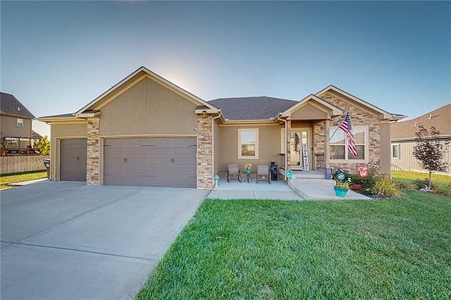 This beautiful Ranch home is ready to move in! 5 bedrooms, 3 full bath, 3 car garage! Main floor includes: Kitchen with island, pantry and all kitchen appliances stay including a double oven, refrigerator, microwave and dishwasher! Living room with a fireplace, master suite has a walk in closet, double vanity and walk in shower, bedrooms 2 and 3, laundry and 2 full bath. Lower level includes 2 bedrooms with egress windows, full bathroom, family room and LOTS of storage!! Granite counters in kitchen and all 3 bathrooms. Large closets and custom blinds throughout! Backyard is fenced with a covered deck! Garage is heated! Neighborhood has a saltwater pool and walking trails.