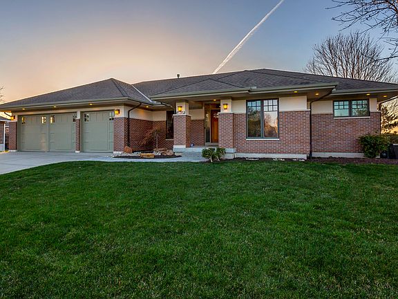 Masterful architectural details in this Craftsman Prairie Style home set apart this Raintree Lake Estates listing from the rest. Custom Brazilian-cherry and natural stone floors, gorgeous mahogany cabinets and doors throughout; grand open kitchen including center island with JennAir gas convertible range, double ovens, stainless appliances and Richlite countertops; main level laundry room; many large windows accent the space and give frame to peaceful water views. Main level suite with walk-in shower, jetted tub and double sinks. Dining and living room each with fireplace plus two additional bedrooms on the main level. 4 baths, lower level walk-out second family room with guest suite. Back-entry garage door workshop with separate HVAC. Luxurious wood details and the finest craftsmanship evoke an era of excellence in construction design that only dream homes are made of. This is that place.